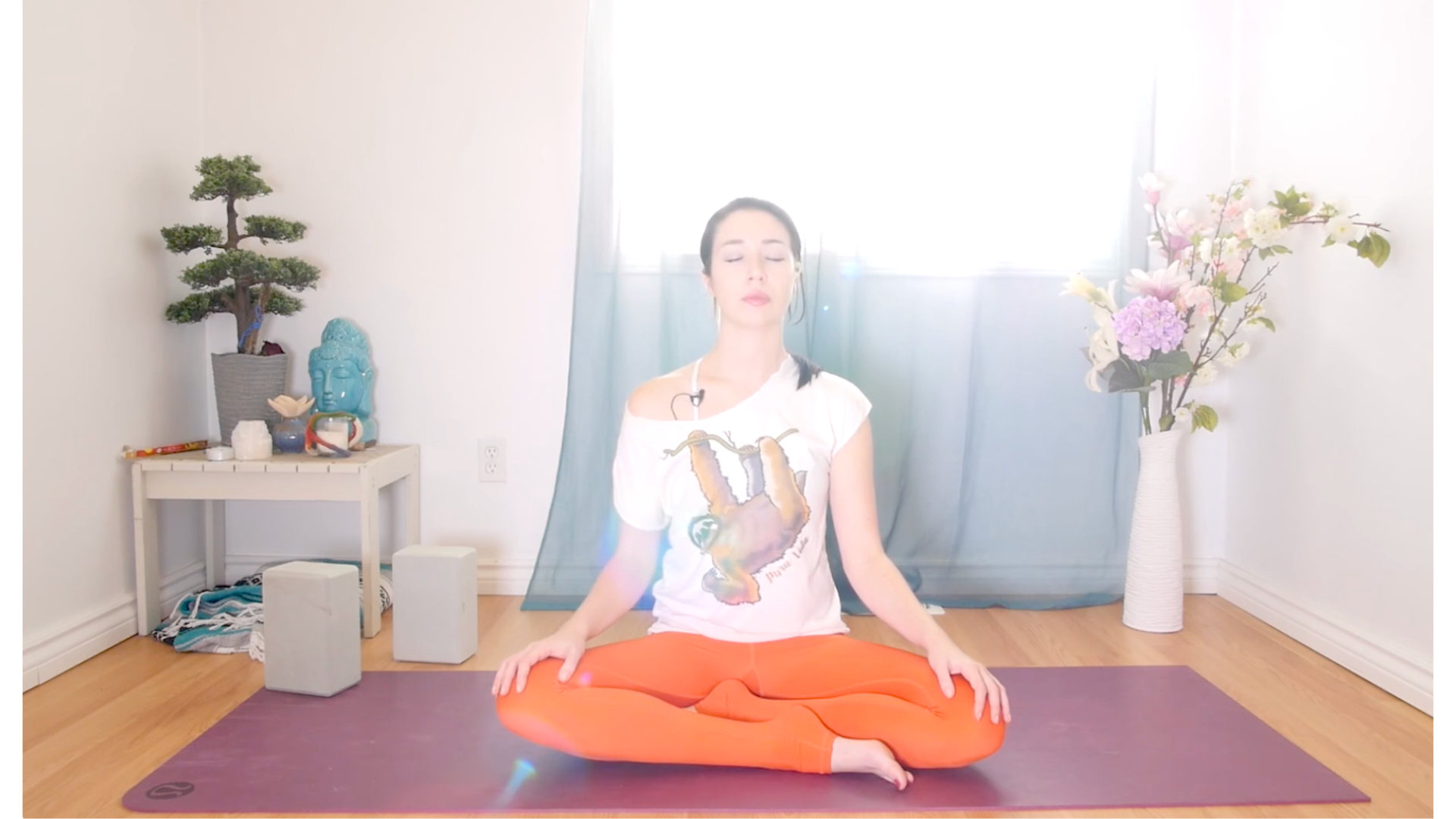 I’m going to use a couple yoga blocks although if you don’t have them at home, you can use pillows, folded blankets, or a bolster.
